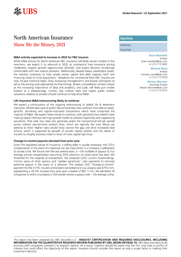 【瑞银】【20210922】瑞银-美股保险行业-让其赚大钱-26页