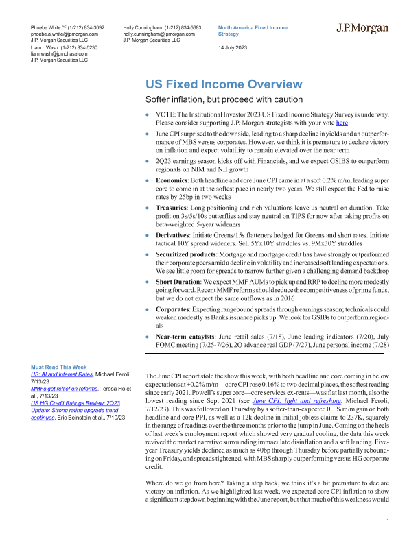 【J.P. Morgan】【20230714】US Fixed Income Overview Softer inflation, but proceed with caution-11页