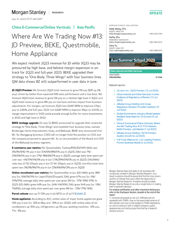 【Morgan Stanley】【20230714】China E-Commerce/Online Verticals Where Are We Trading Now#13 JD Preview, BEKE, Questmobile, Home Appliance-11页