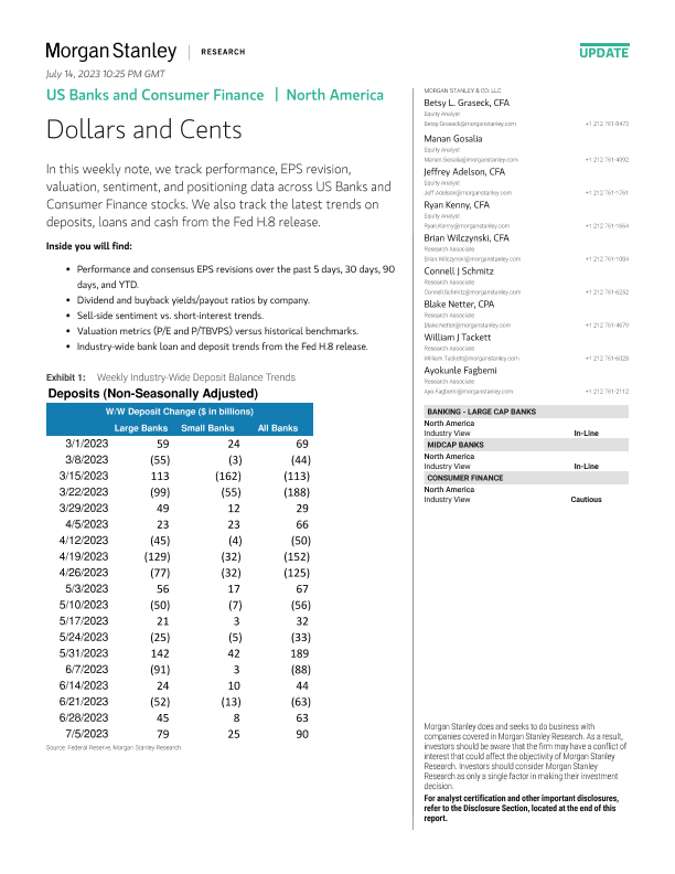 【Morgan Stanley】【20230714】Morgan Stanley-US Banks and Consumer Finance Dollars and Cents-26页