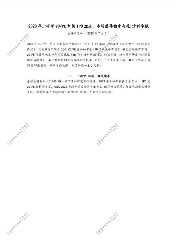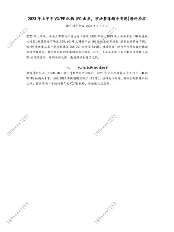 【清科研究中心】【20230705】2023年上半年VC-PE机构IPO盘点,市场整体稳中有进-7页