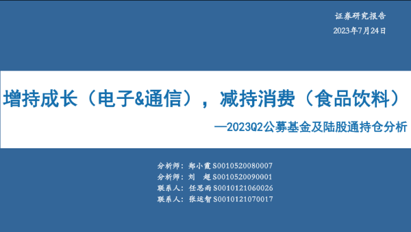 【华安证券】【20230724】2023Q2公募基金及陆股通持仓分析:增持成长(电子&通信),减持消费(食品饮料)-45页