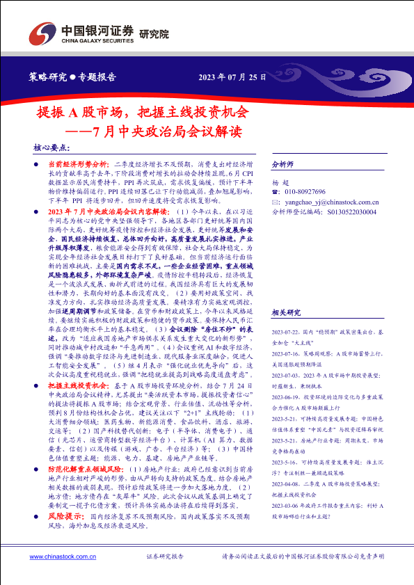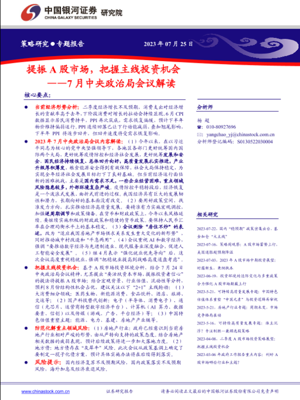 【银河证券】【20230725】7月中央政治局会议解读:提振A股市场,把握主线投资机会-18页