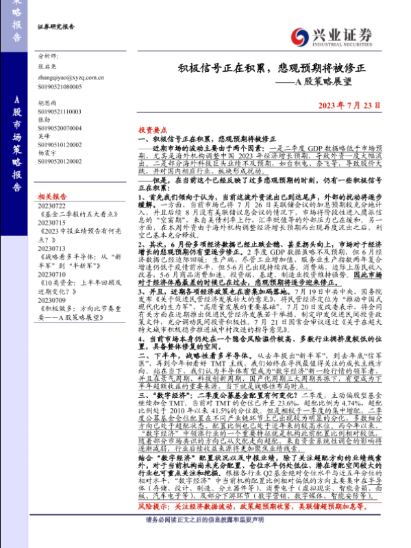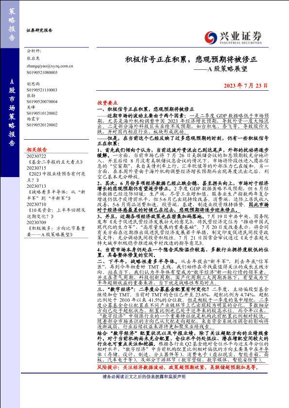 【兴业证券】【20230723】积极信号正在积累,悲观预期将被修正——A股策略展望-15页