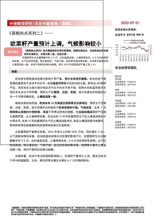 【中信期货】【20230721】《菜粕热点系列二》欧菜籽产量预计上调,气候影响较小-15页