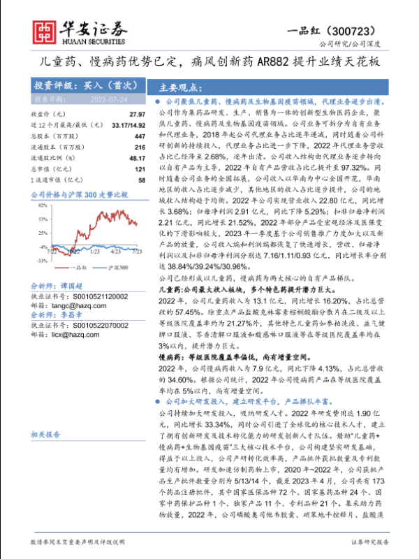 【华安证券】【20230724】一品红(300723)儿童药、慢病药优势已定,痛风创新药AR882提升业绩天花板-31页