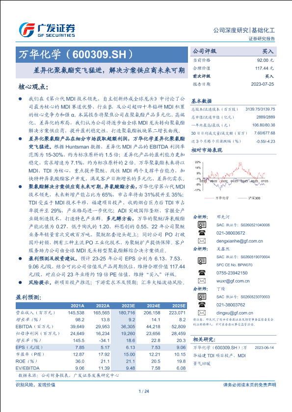 【广发证券】【20230725】万华化学(600309)差异化聚氨酯突飞猛进,解决方案供应商未来可期-24页