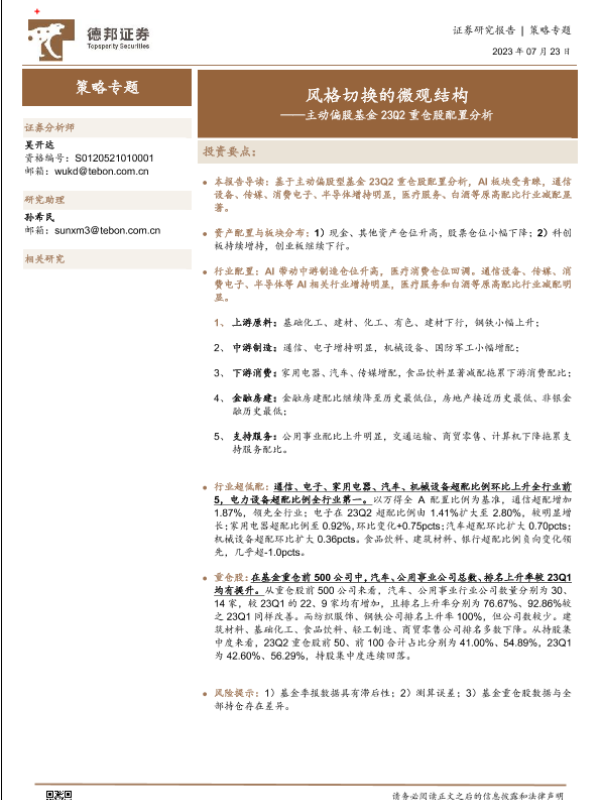 【德邦证券】【20230723】主动偏股基金23Q2重仓股配置分析:风格切换的微观结构-15页