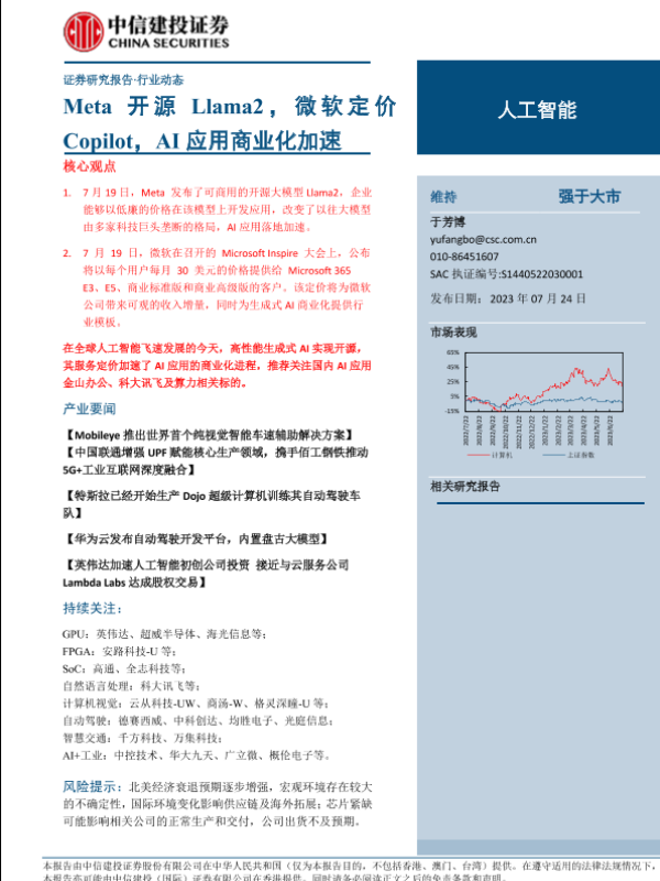 【中信建投证券】【20230724】人工智能行业:Meta开源Llama2,微软定价Copilot,AI应用商业化加速-19页