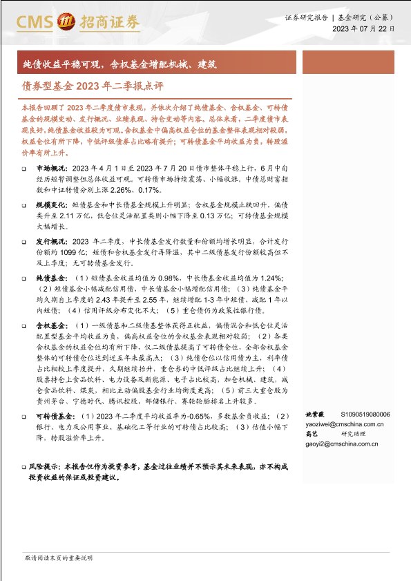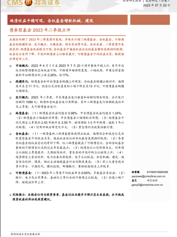 【海通证券】【20230722】债券型基金2023年二季报点评:纯债收益平稳可观,含权基金增配机械、建筑-19页