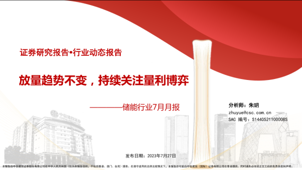 【中信建投证券】【20230727】储能行业7月月报:放量趋势不变,持续关注量利博弈-40页