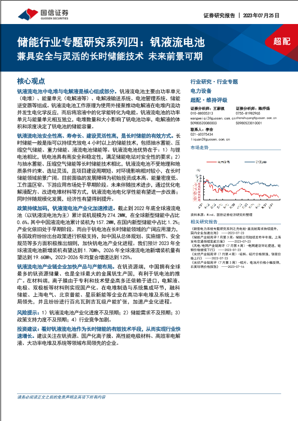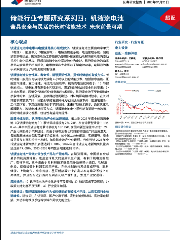 【国信证券】【20230725】储能行业专题研究系列四:钒液流电池兼具安全与灵活的长时储能技术 未来前景可期-29页