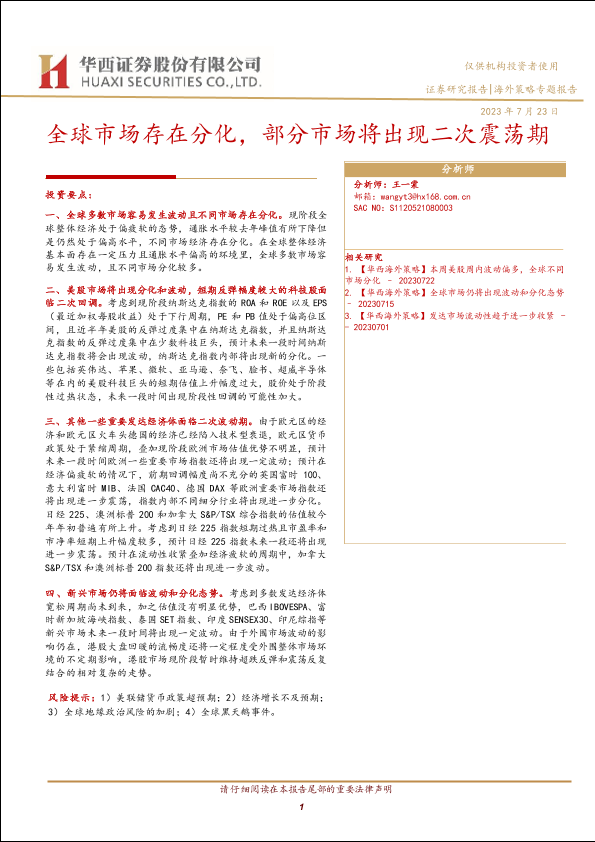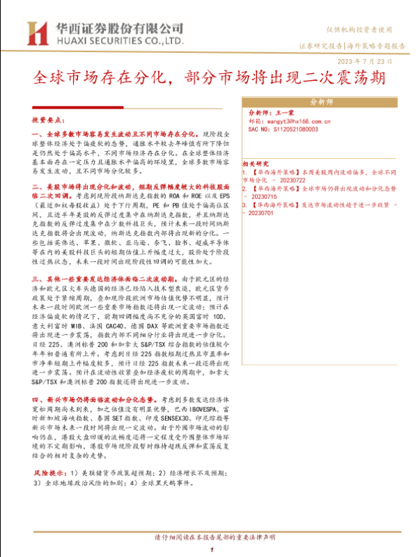 【华西证券】【20230723】全球市场存在分化,部分市场将出现二次震荡期-21页