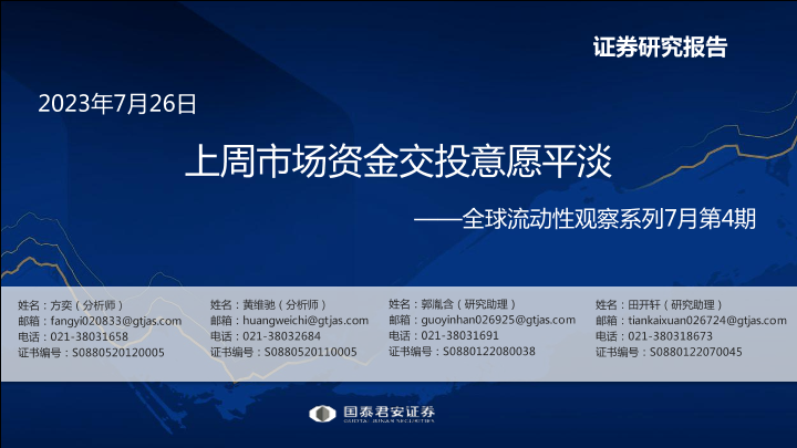【国泰君安证券】【20230726】全球流动性观察系列7月第4期:上周市场资金交投意愿平淡-57页