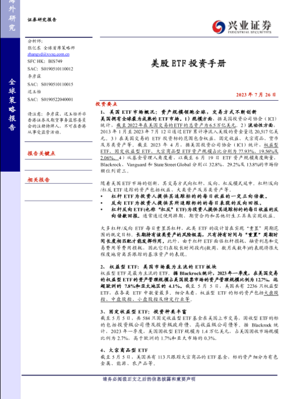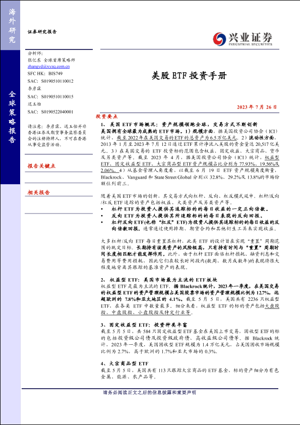 【兴业证券】【20230726】美股 ETF投资手册-42页