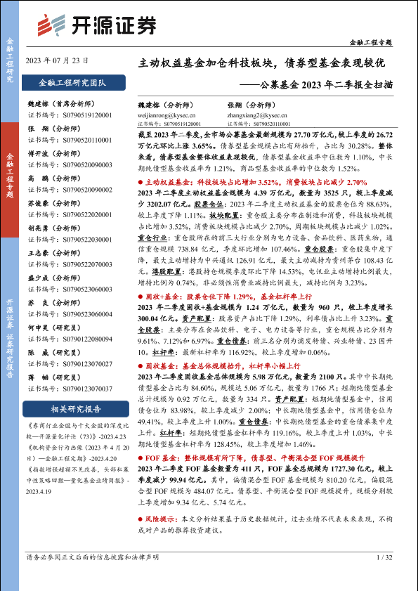 【开源证券】【20230723】公募基金2023年二季报全扫描:主动权益基金加仓科技板块,债券型基金表现较优-32页