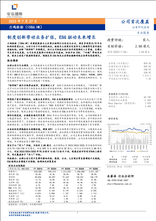 【安信证券】【20230727】力鸿检验(01586)制度创新带动业务扩张,ESG驱动未来增长-25页