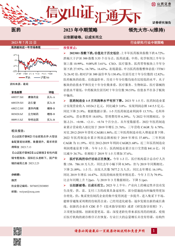 【山西证券】【20230722】医药2023年中期策略:以创新破卷,以成长而立-31页