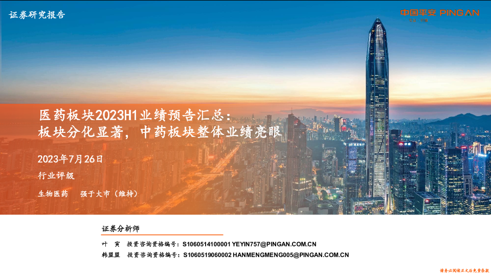 【平安证券】【20230726】医药板块2023H1业绩预告汇总:板块分化显著,中药板块整体业绩亮眼-25页