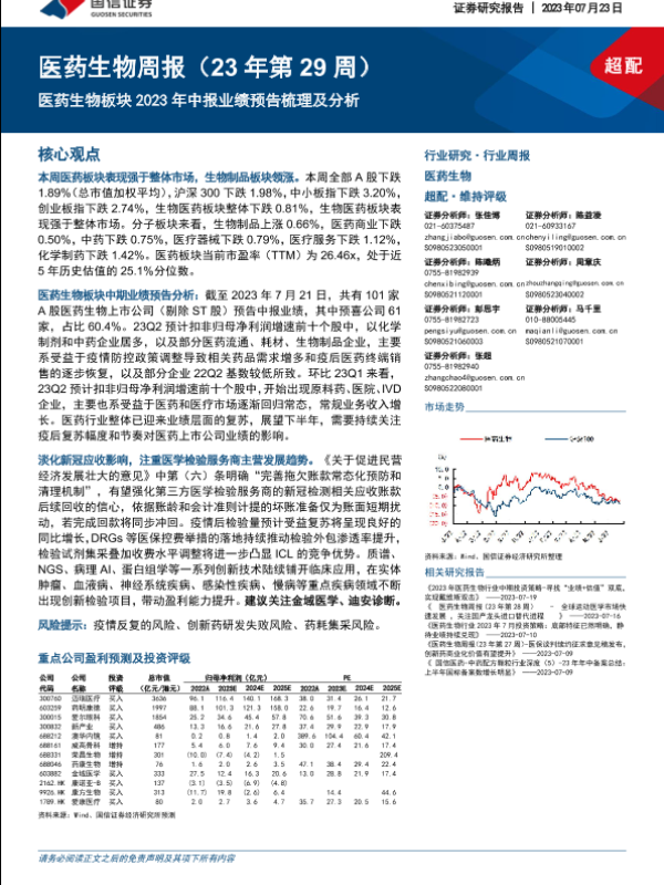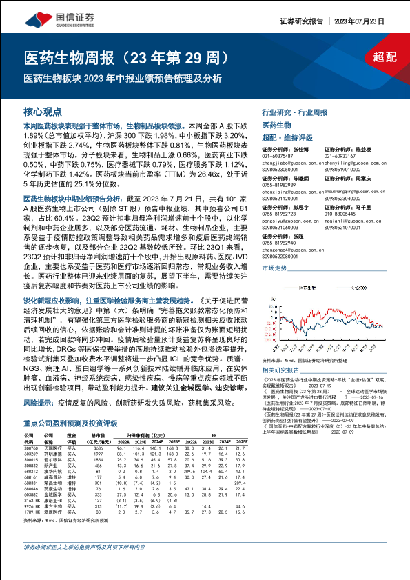 【国信证券】【20230723】医药生物周报(23年第29周):医药生物板块2023年中报业绩预告梳理及分析-22页