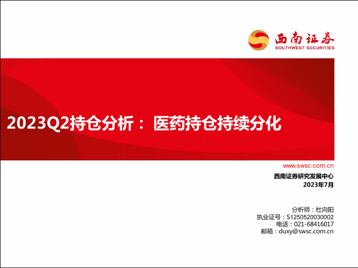 【西南证券】【20230725】医药行业2023Q2持仓分析:医药持仓持续分化-24页