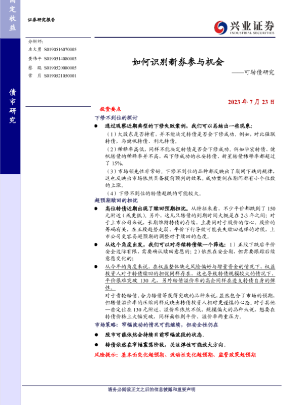 【兴业证券】【20230723】如何识别新券参与机会——可转债研究-21页