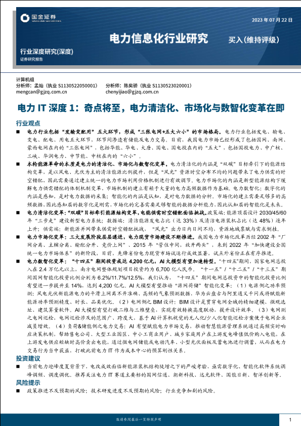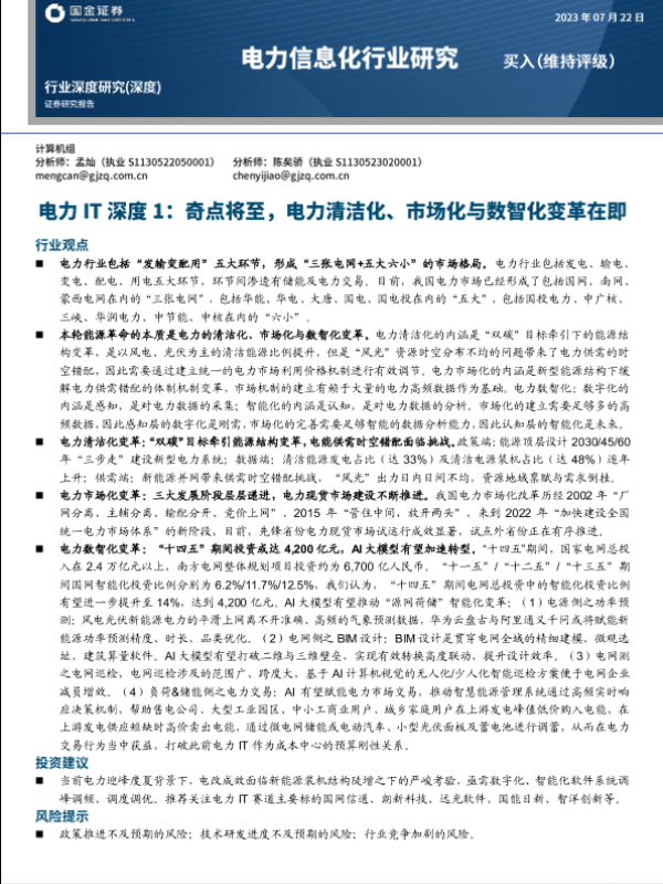 【国金证券】【20230722】国金证券:电力IT深度1-奇点将至-电力清洁化、市场化与数智化变革在即-21页