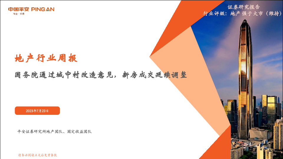 【平安证券】【20230723】地产行业周报:国务院通过城中村改造意见,新房成交延续调整-20页