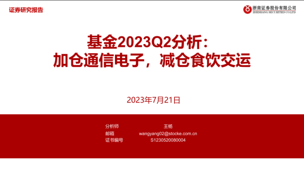 【浙商证券】【20230721】基金2023Q2分析:加仓通信电子,减仓食饮交运-30页