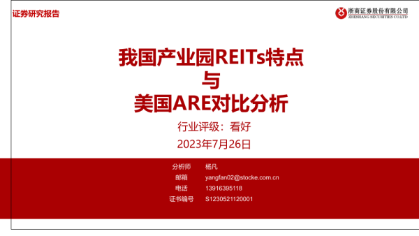 【浙商证券】【20230726】基础设施公募REITs行业:我国产业园REITs特点与美国ARE对比分析-46页