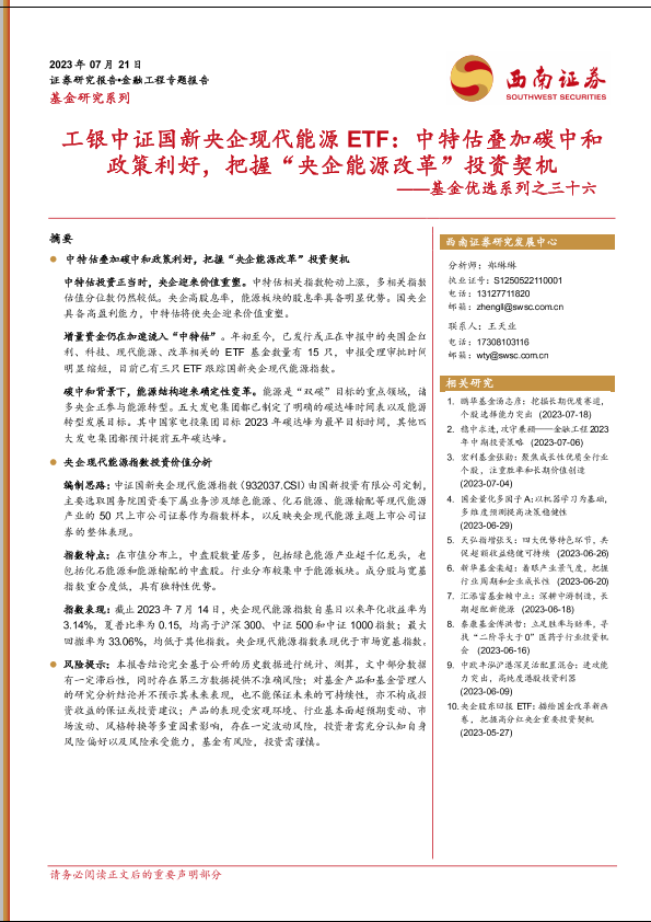 【西南证券】【20230721】基金优选系列之三十六:工银中证国新央企现代能源ETF,中特估叠加碳中和政策利好,把握“央企能源改革”投资契机-15页
