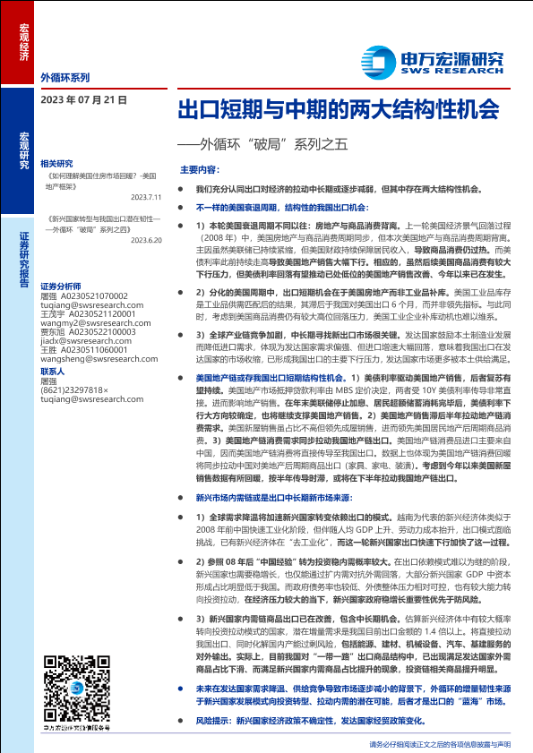 【申万宏源】【20230721】外循环“破局”系列之五:出口短期与中期的两大结构性机会-16页