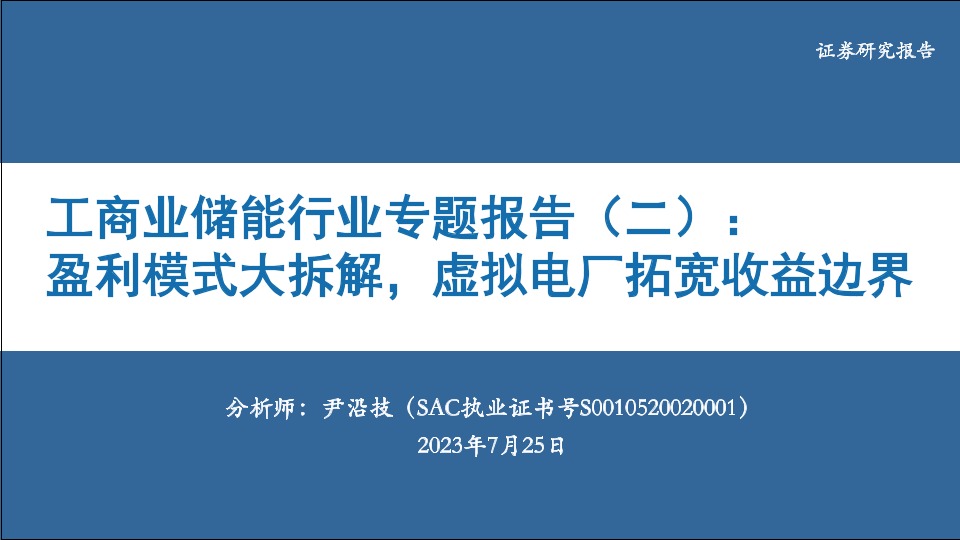 【华安证券】【20230725】工商业储能行业专题报告(二): 盈利模式大拆解,虚拟电厂拓宽收益边界-48页