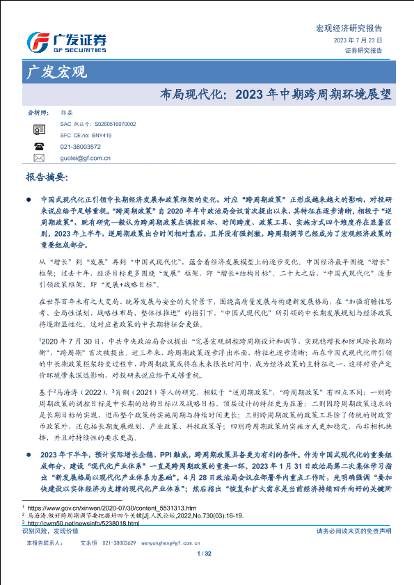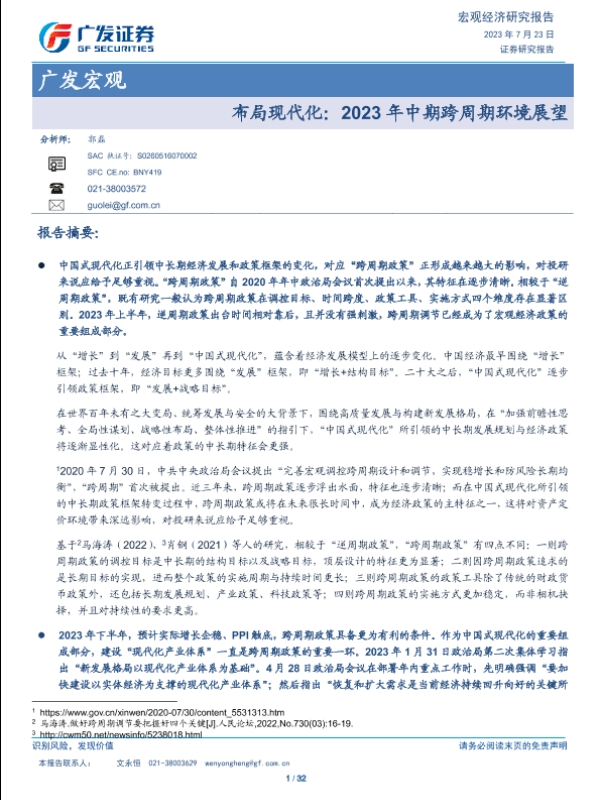 【广发证券】【20230723】布局现代化:2023年中期跨周期环境展望-32页