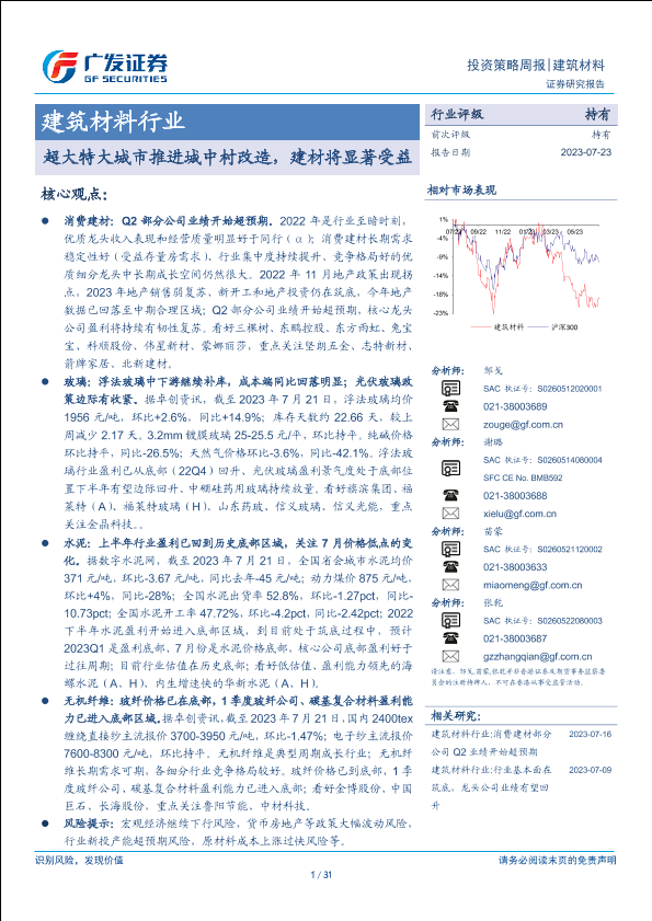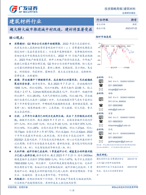 【广发证券】【20230723】建筑材料行业投资策略周报:超大特大城市推进城中村改造,建材将显著受益-31页