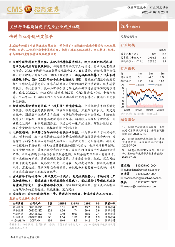 【海通证券】【20230723】快递行业专题研究报告:关注行业格局演变下龙头企业成长机遇-33页
