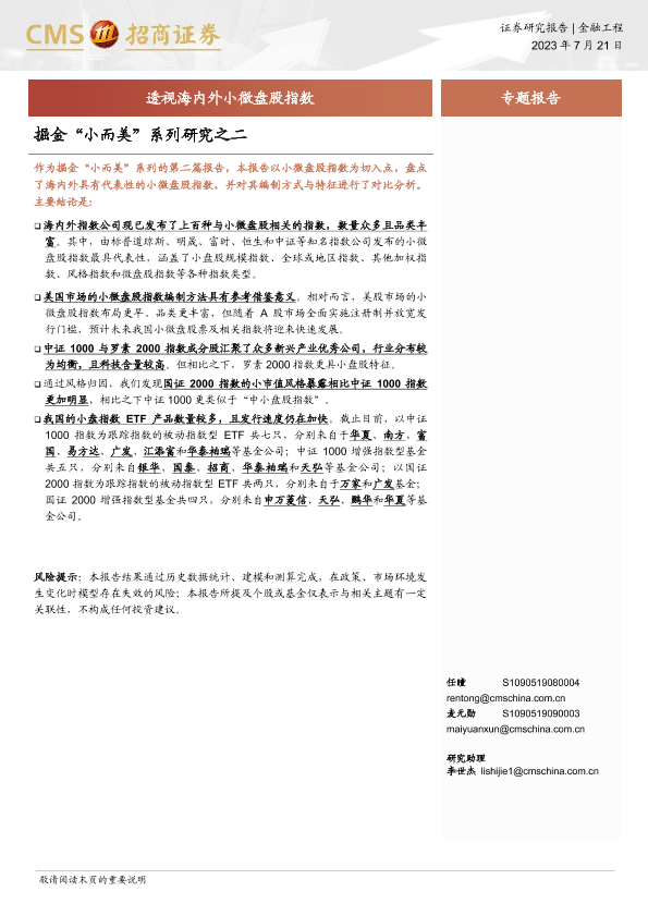 【海通证券】【20230721】掘金“小而美”系列研究之二:透视海内外小微盘股指数-20页