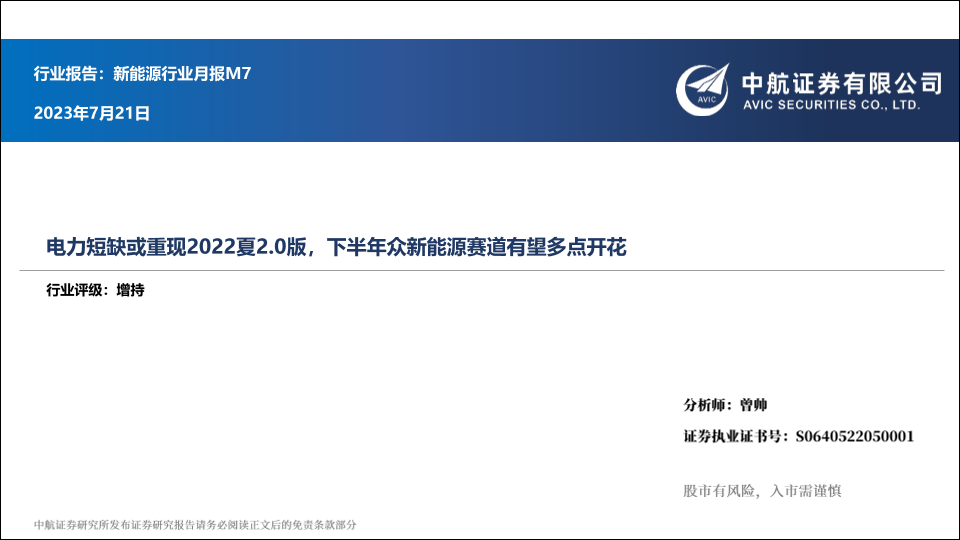 【中航证券】【20230721】电力短缺或重现2022夏2.0版,下半年众新能源赛道有望多点开花-18页