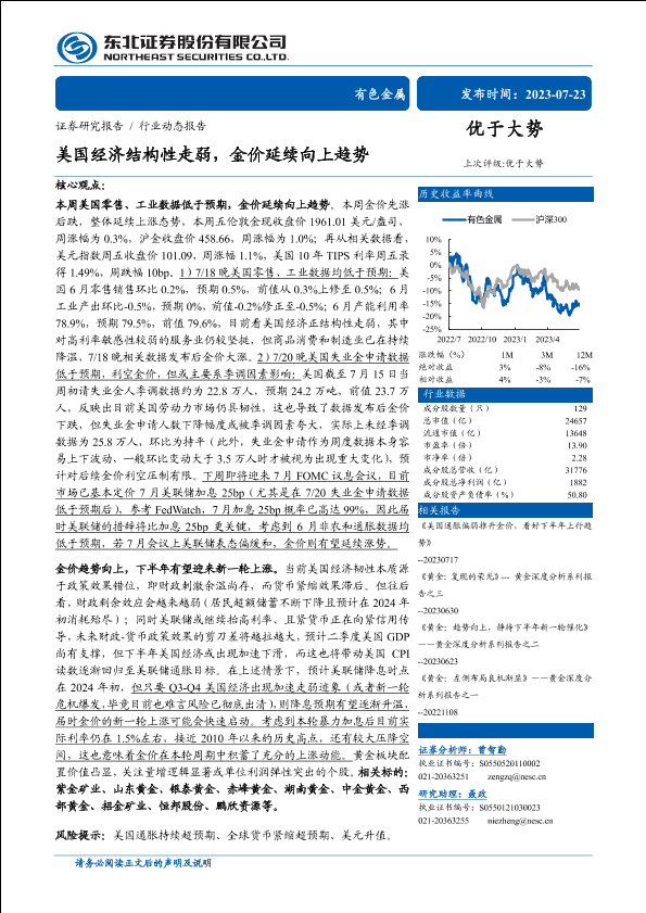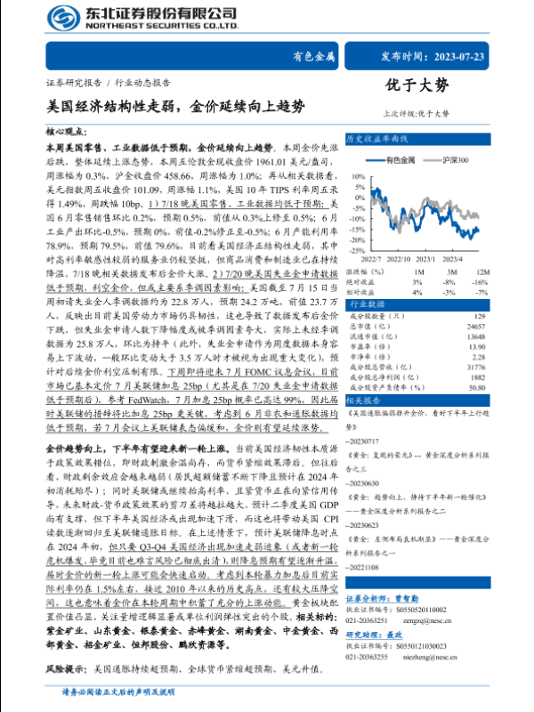 【东北证券】【20230723】美国经济结构性走弱,金价延续向上趋势-22页