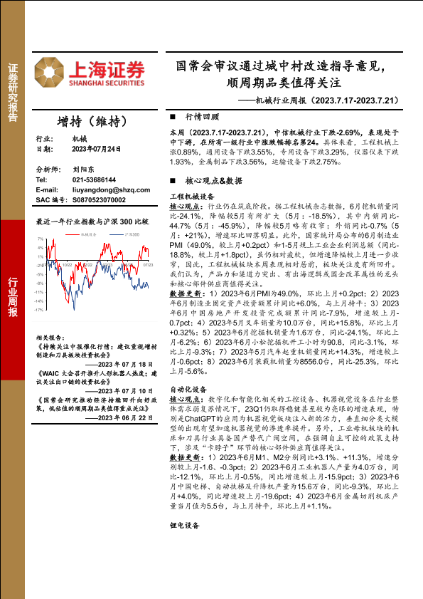 【上海证券】【20230721】机械行业周报:国常会审议通过城中村改造指导意见,顺周期品类值得关注-22页