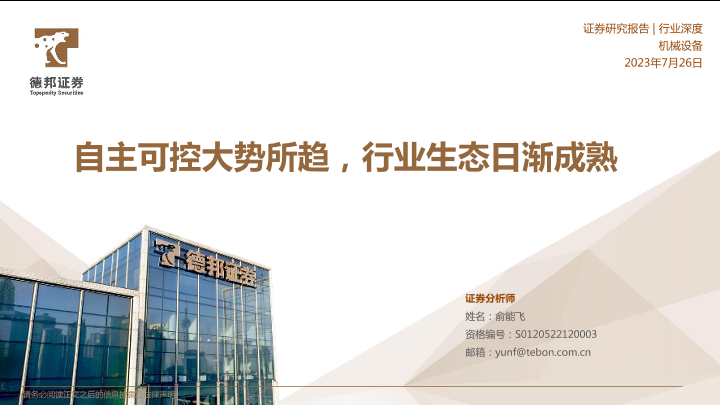 【德邦证券】【20230726】机械设备行业深度:自主可控大势所趋,行业生态日渐成熟-56页