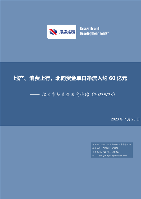 【信达证券】【20230723】权益市场资金流向追踪(2023W28):地产、消费上行,北向资金单日净流入约60亿元-15页