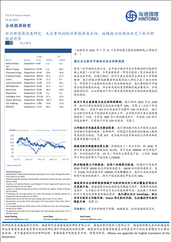 【海通国际】【20230725】欧洲新能源深度研究:未受重视的欧洲新能源成长性;地缘政治结构性改变了欧洲新能源前景-15页