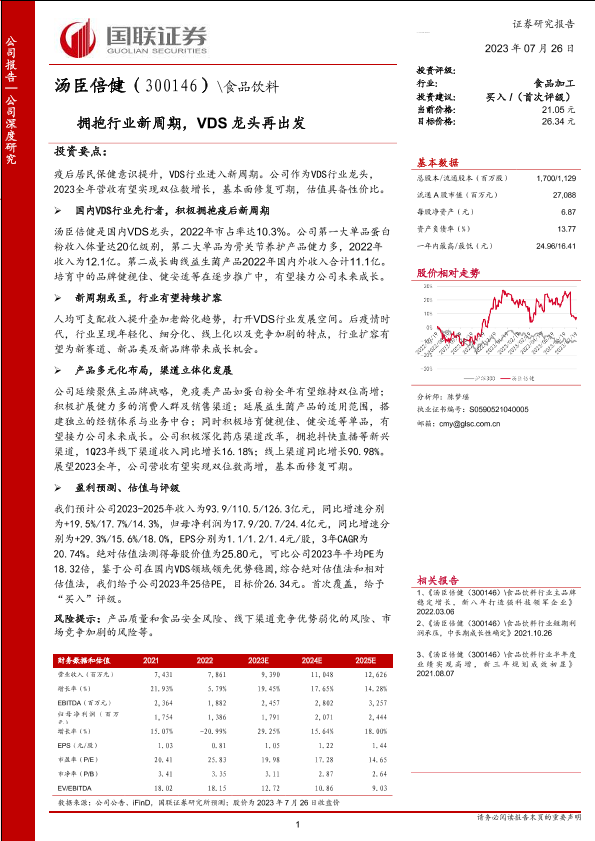 【国联证券】【20230726】汤臣倍健(300146)拥抱行业新周期,VDS龙头再出发-29页