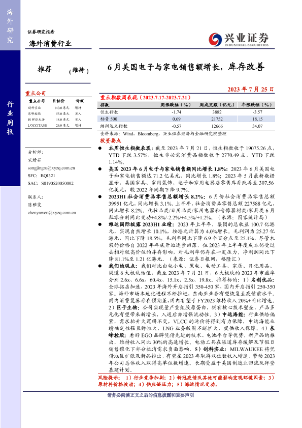 【兴业证券】【20230725】6月美国电子与家电销售额增长,库存改善-17页