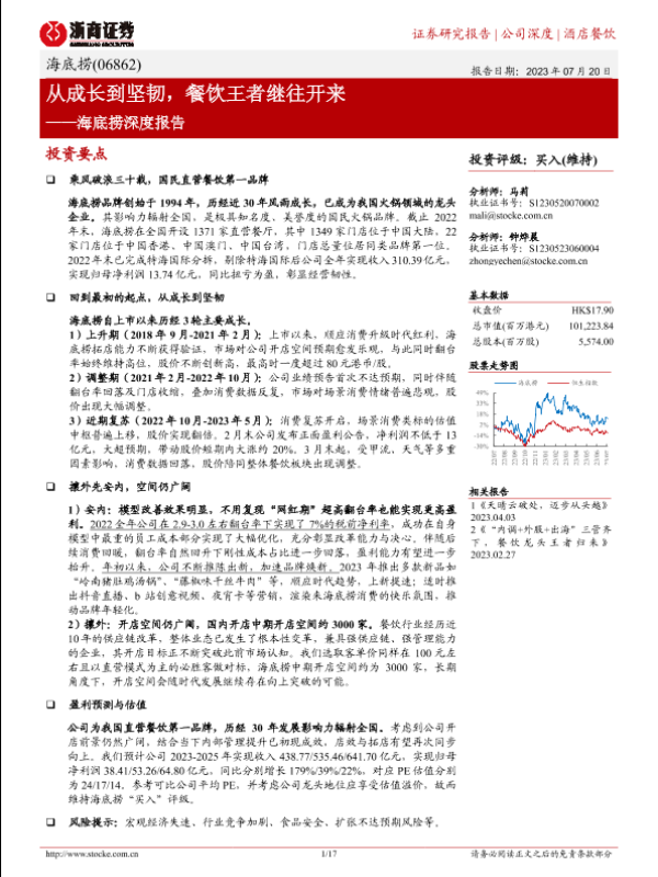【浙商证券】【20230720】海底捞深度报告:从成长到坚韧,餐饮王者继往开来-17页