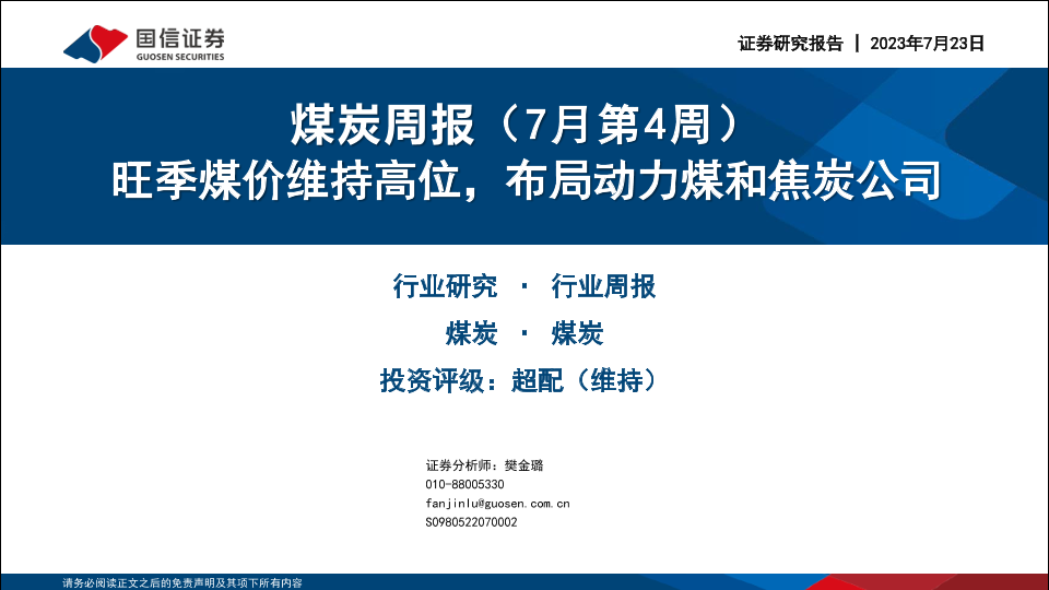 【国信证券】【20230723】煤炭周报(7月第4周):旺季煤价维持高位,布局动力煤和焦炭公司-28页