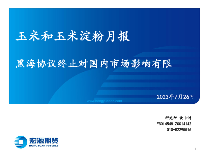 【宏源期货】【20230726】玉米和玉米淀粉月报:黑海协议终止对国内市场影响有限-27页
