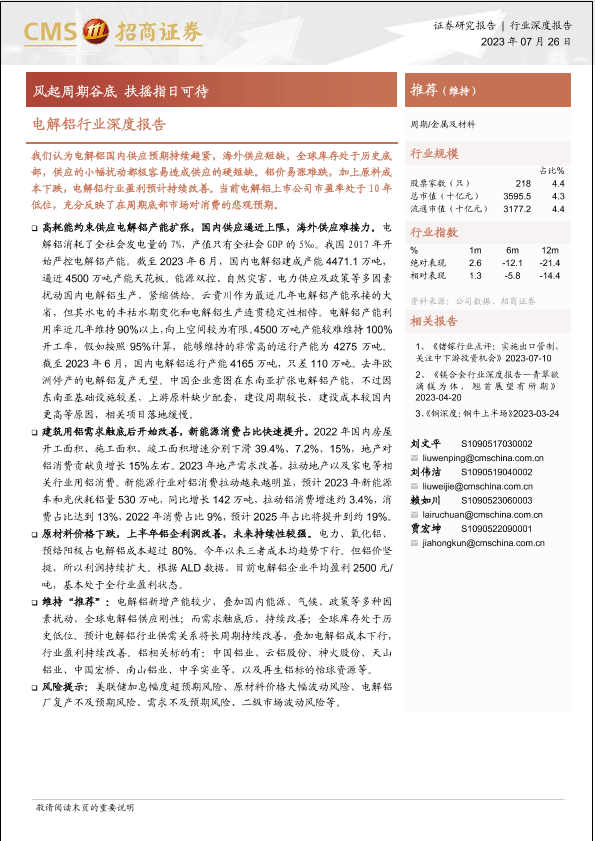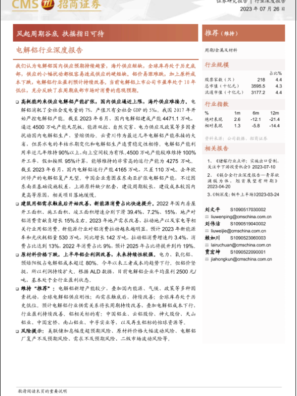 【海通证券】【20230726】电解铝行业深度报告:风起周期谷底,扶摇指日可待-38页