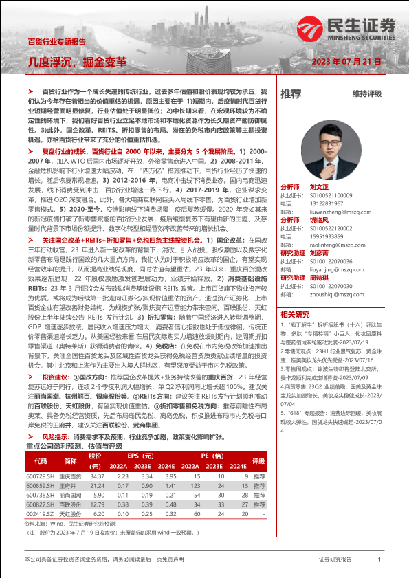 【民生证券】【20230721】百货行业专题报告:几度浮沉,掘金变革-44页